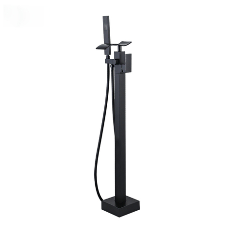 איכות גבוהה בסגנון חופשי מודרני ברז ברז שחור רצפה רכוב אמבט רכוב ברז יד חומר פליז